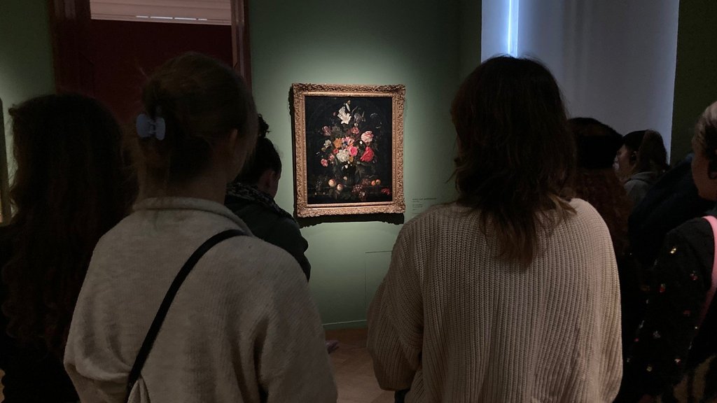 Auch der nächste Morgen wartete mit einem Leckerbissen auf. Wir wurden durch eine monografische Schau mit Werken der Stilllebenmalerin Rachel Ruysch geführt, deren prachtvolle Blumenbilder einen tiefen Einblick in die technische Meisterschaft der Feinmalerei ermöglichten. Vor uns hingen Bilder, die wie Juwelen an den Wänden leuchteten und die perfekte Illusion von duftenden Blumen boten. Nach einem ersten geführten Rundgang schloss sich unsere Gruppe zusammen, um gemeinsam den Fragestellungen zur Verwendung historischer Farbpigmente genauer nachzugehen. Erst auf den zweiten Blick zeigten sich in den fantastischen Gemälden Schadstellen, welche das hochgiftige Realgar hinterliess oder der verblichenen Smalte zuzuschreiben waren. Das im Unterricht theoretisch erworbene Wissen konnten wir auf diese Weise im Original sehen. Hinsichtlich der bevorstehenden Prüfung war dieser Umstand für einige von uns ein lehrreicher Glücksfall. Der Tag ging mit einem mehrstündigen Spaziergang entlang der Werke Alter Meister zu Ende. Van der Weyden, Dürer, Botticelli, Leonardo und Rubens weckten Fragen und hinterliessen grosses Staunen über die thematische Tiefgründigkeit und das technische Können der klassischen Maler. Erfüllt von einer Vielzahl von Eindrücken nahmen wir am Sonntagabend den Zug, wo die Gespräche erst verstummten, als der Zug in Zürich einfuhr. Die Exkursion war eine Entdeckungsreise zur Kunst und ein Begegnungsfeld von Menschen, deren gemeinsamer Nenner die Berufsmaturitätsschule Zürich ist. Es war ein bereicherndes Erlebnis für alle.