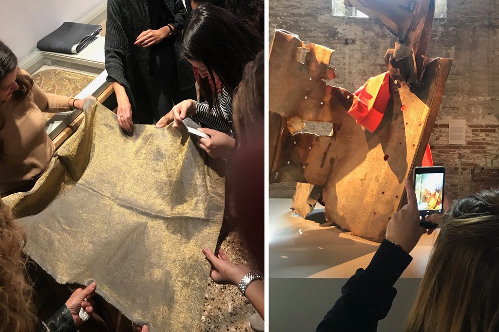 Der folgende Tag war einer ganz anderen Welt Venedigs gewidmet: der Fabrikation von kostbaren Seidenbrokaten. Venedig erlangte bereits vor 500 Jahren Berühmtheit durch seine Herstellung von goldgewirkten Seidenstoffen, die heute noch Inspirationsquellen für aktuelle Kollektionen sind. Wir hatten die Gelegenheit, das Textil-Archiv der traditionsreichen Firma Rubelli zu besichtigen und erhielten faszinierende Einblicke in die historische Textil-Kunst, die auch in der Malerei ihren Widerhall findet.
