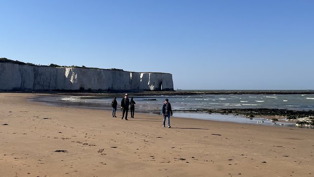 Outside the city, we also spent time exploring nature. We went hiking along the white cliffs on the Isle of Thanet, where we enjoyed the fresh air and beautiful views. The walks were a nice break from the busy days, and we could just enjoy being outside. We also had free time at the beach in Broadstairs. We swam, played games, relaxed in the sun and had a lot of fun there.