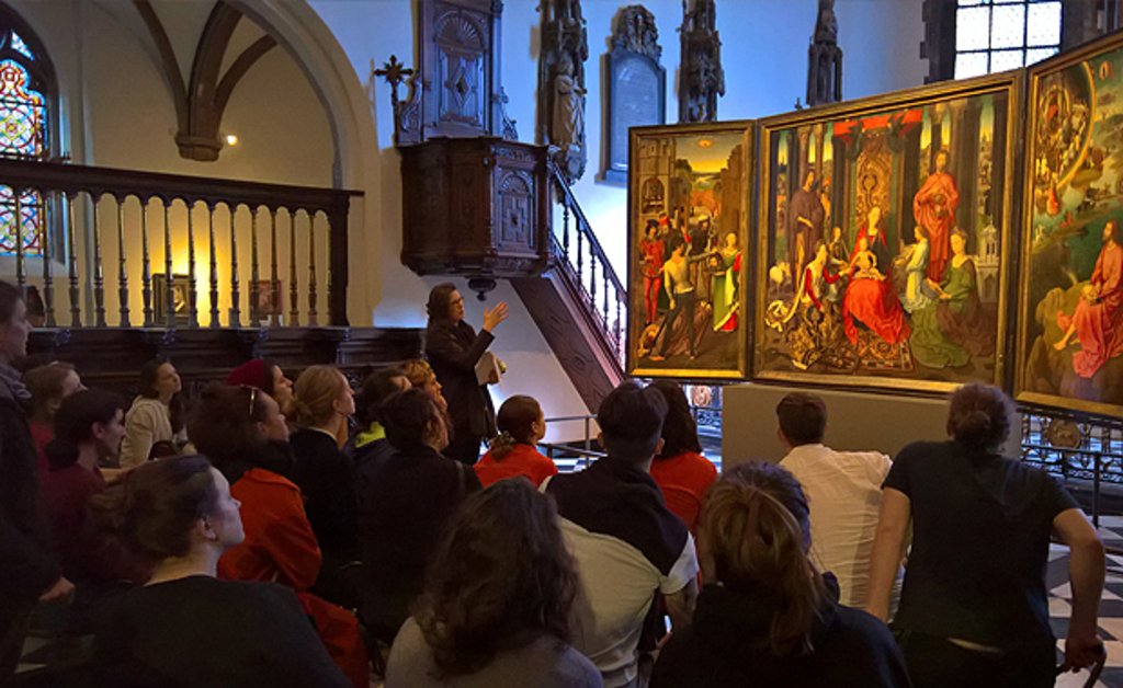 Für unsere Studienreise hatten wir uns ein konzentriertes Programm vorgenommen, das sich vorwiegend um ein einziges Werk drehte: Wir hatten vor, dem Jahrhundertereignis der Restaurierung des Genter Altares nicht nur zuzuschauen, sondern die Umstände seiner Entstehung und seine Geschichte zu verstehen und das Handwerk der Restauratoren kennenzulernen.